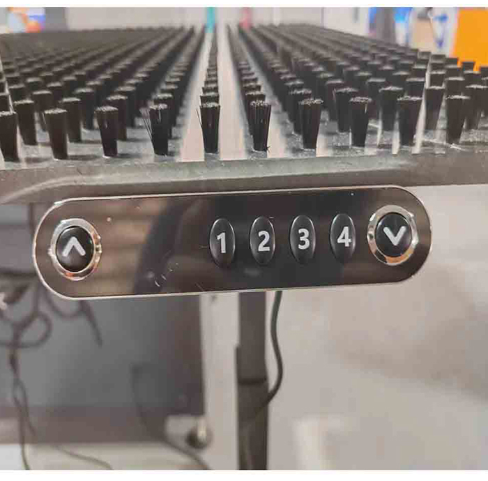 壓鉚機(jī)配套操作臺(tái),適合大尺寸板材的壓鉚工作。升降臺(tái)升降高度69-115cm,臺(tái)面尺寸:長(zhǎng)1200mm,寬700mm。4個(gè)高度可記憶設(shè)置。操作便捷,節(jié)省人工。臺(tái)面表面均勻分布高密度毛刷,避免板材表面移動(dòng)過(guò)程中造成刮痕。